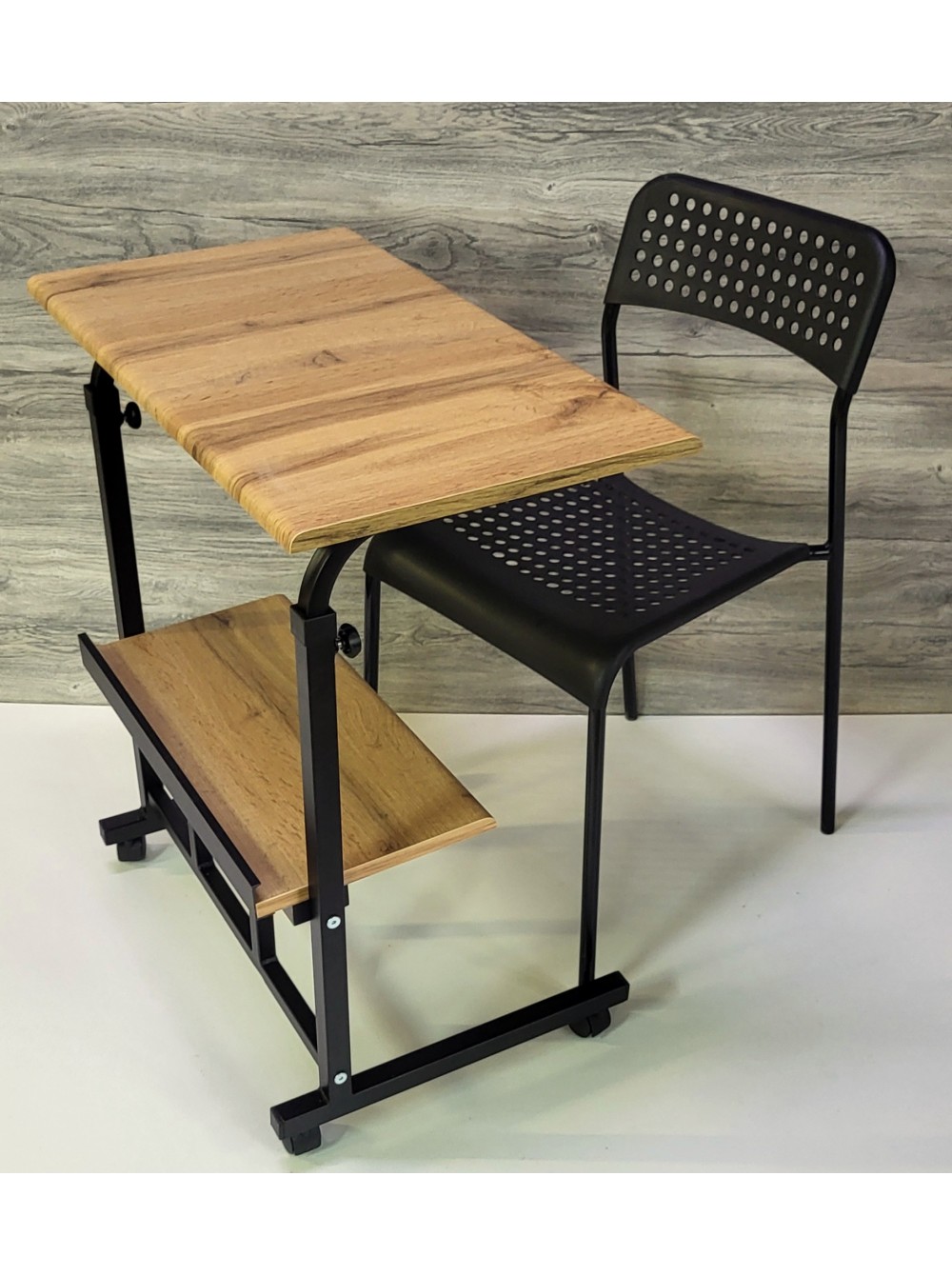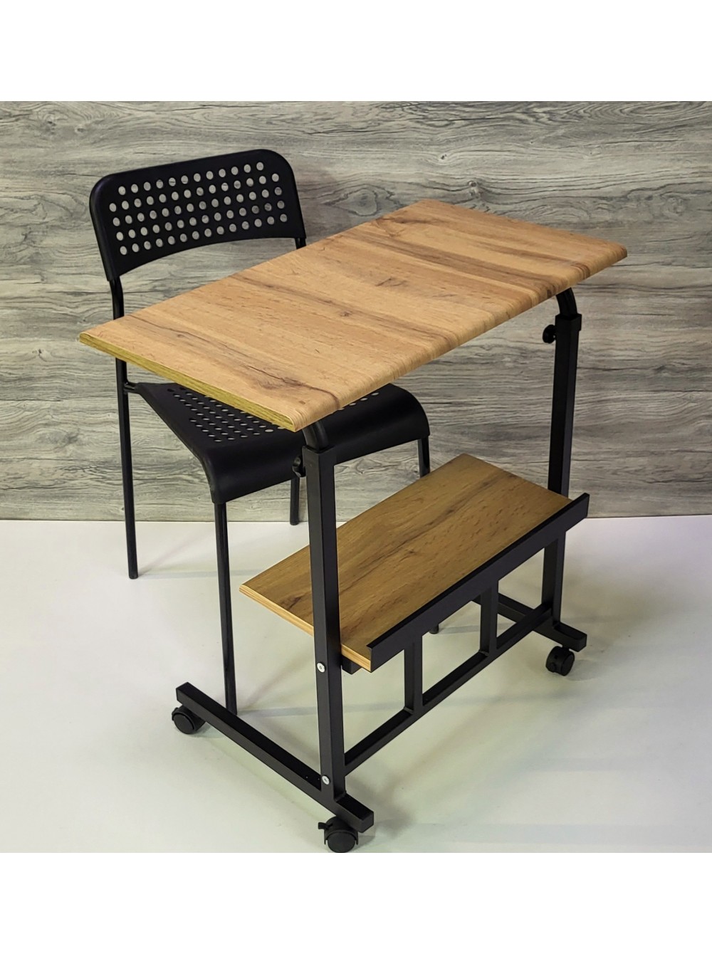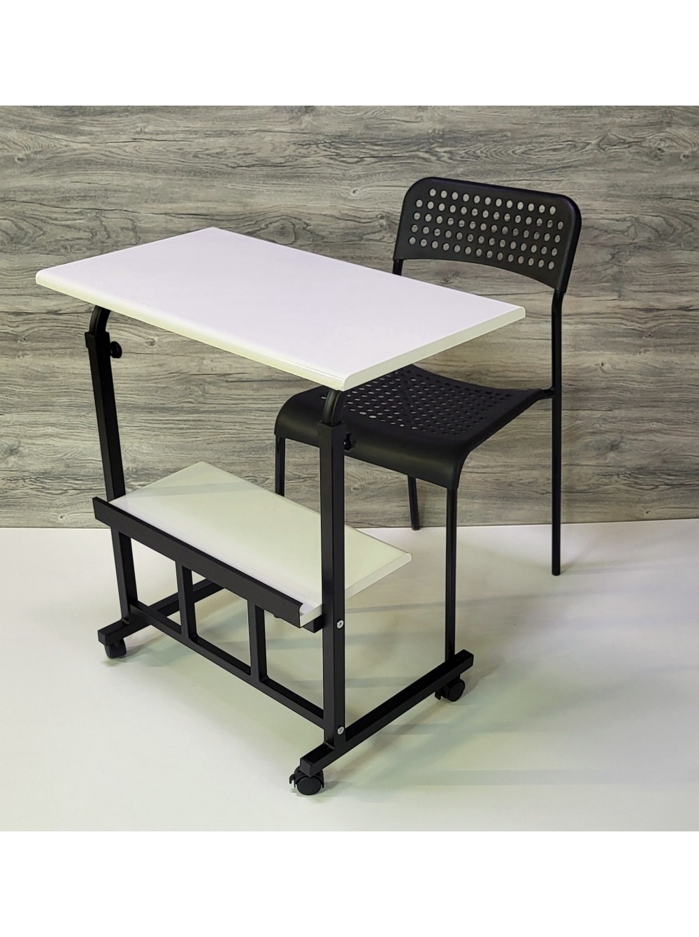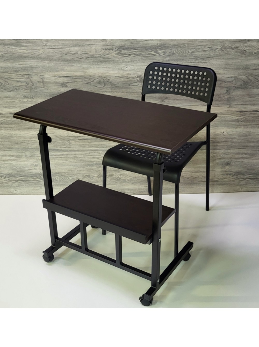 Данный компьютерный, журнальный стол прекрасно подойдет для небольших квартир в которых отсутствует возможность в организации полноценного рабочего места. Размер столешницы - 68х38см, 68х48см, 78х48см ,88х48см, 98х48см или по Вашим размерам. Возможность регулировать высоту столешницы позволяет использовать его в качестве кофейного, а также сервировочного столика.
